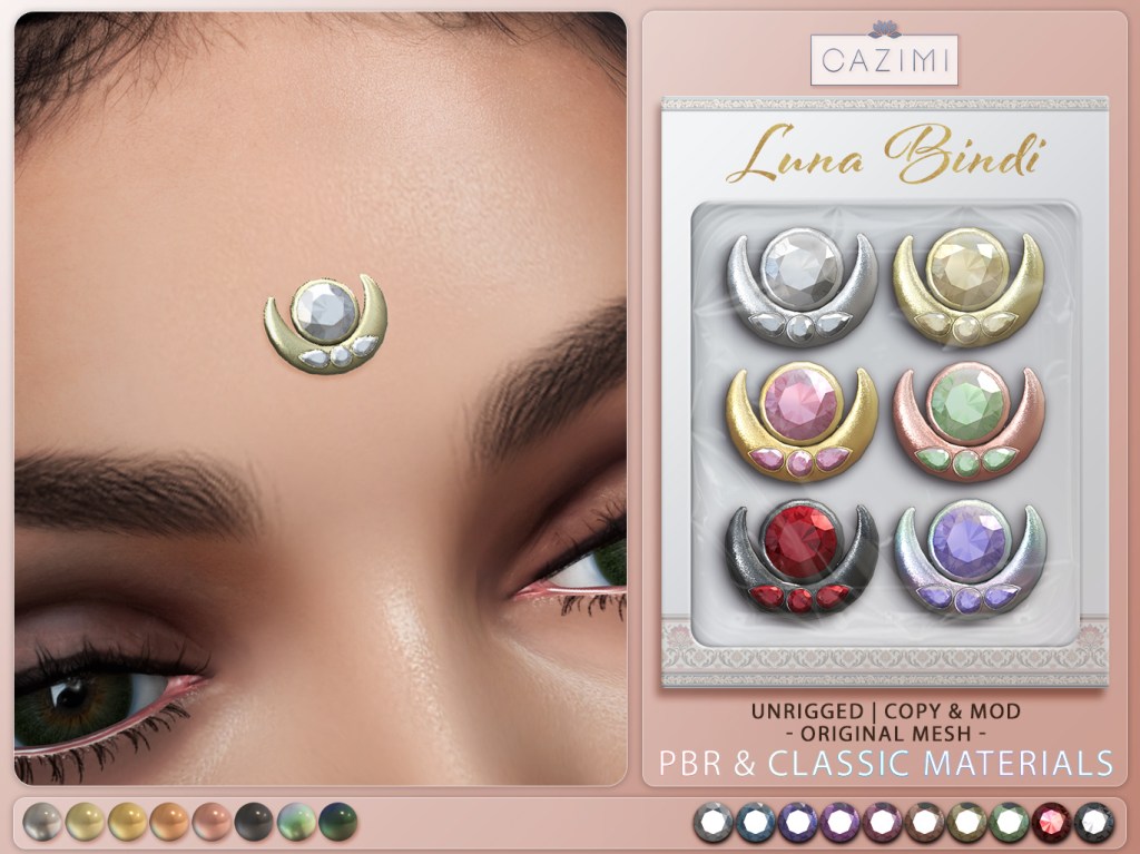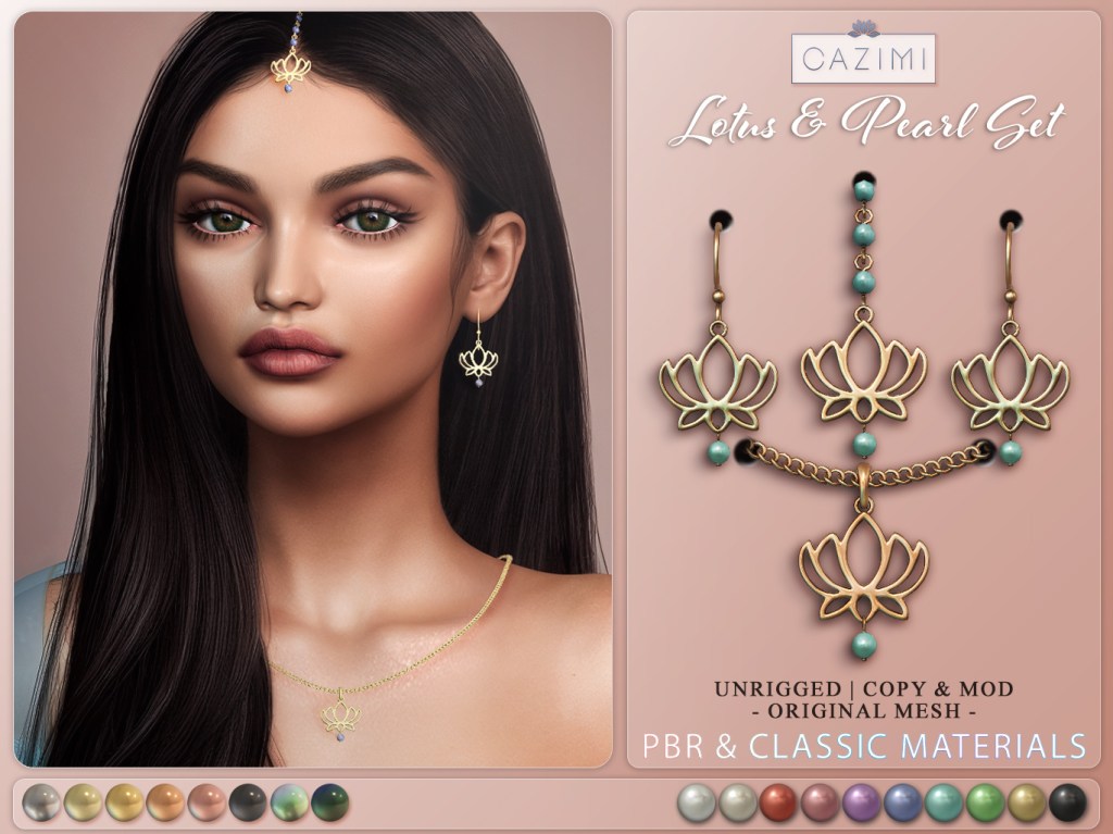 NEW at Designer Showcase, Lotus & Pearl jewelry set and Luna Bindi. Unrigged, mod & copy.