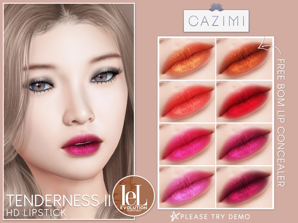 New colors of the Tenderness HD lipsticks, on sale at the main store all weekend for Saturday Sale! Ten bright tones with a faded lip line. Includes free BOM lip concealer.