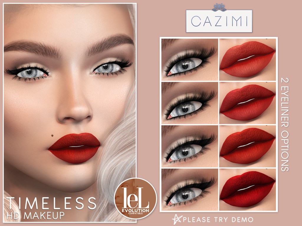 Timeless HD makeup set jut 75L all weekend at the main store. For Lelutka Evolution heads only. Please try a demo before purchasing