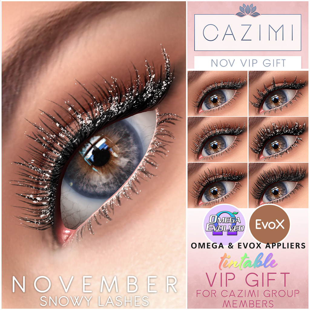 NEW November Snowy Lashes VIP group members! Includes Omega and EvoX Appliers. Available in the VIP garden, be sure to wear your group tag.