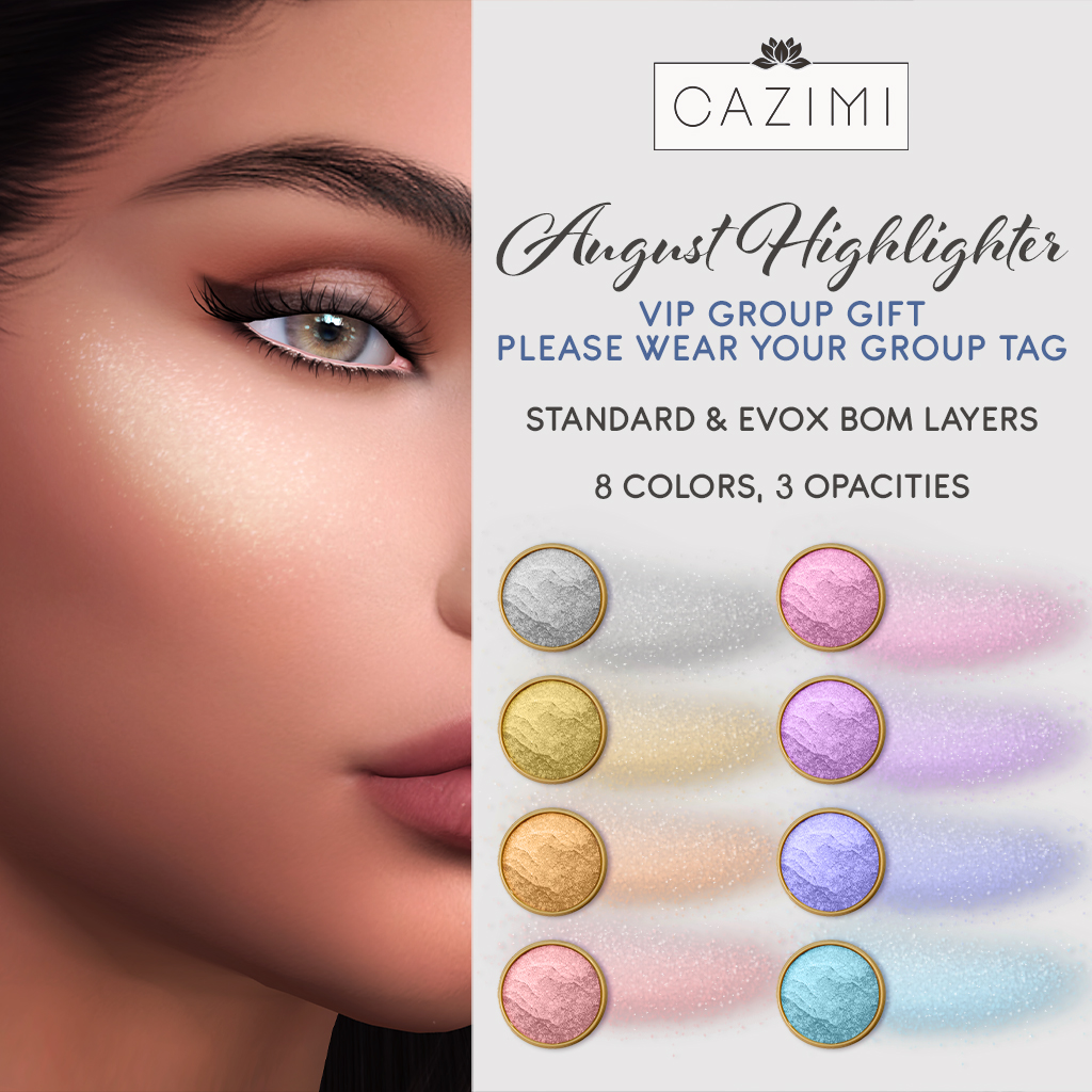 My first highlighter and it’s just for my VIPs! Highlights the upper cheek area and comes in 8 colors each with 3 opacities. BOM layers for Standard UV and EvoX.