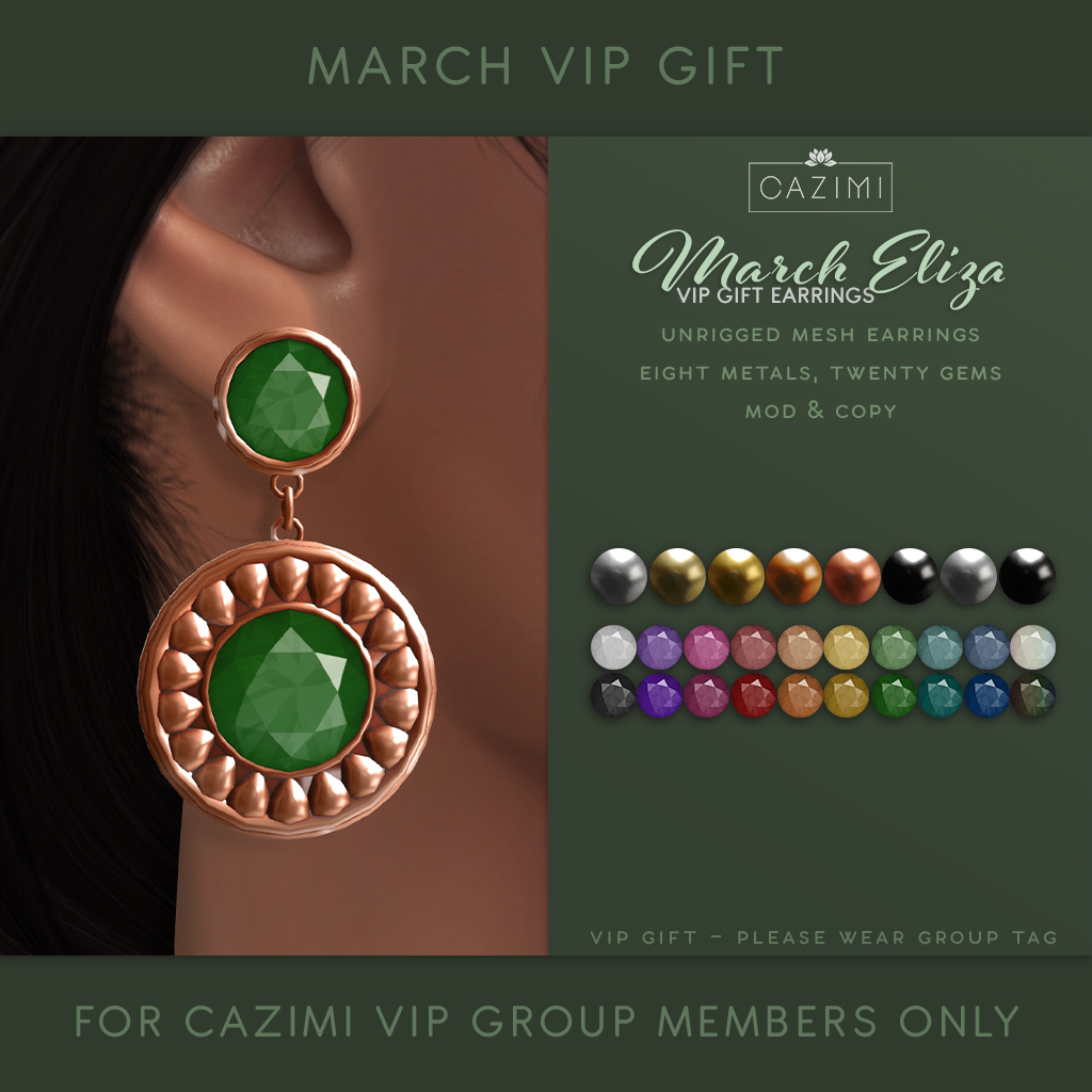 VIP members receive 5% cash back on regular in store purchases plus a monthly gift! 250L to join and there are now over 4 years of gifties available! Join by clicking the sign in store, in the VIP garden. Be sure to wear your group tag to click on the available gifts.