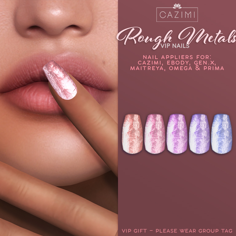 Rough Metals nails in 5 new colors! Comes with appliers for CAZIMI, ebody, Gen.x, Maitreya, Omega and Prima.