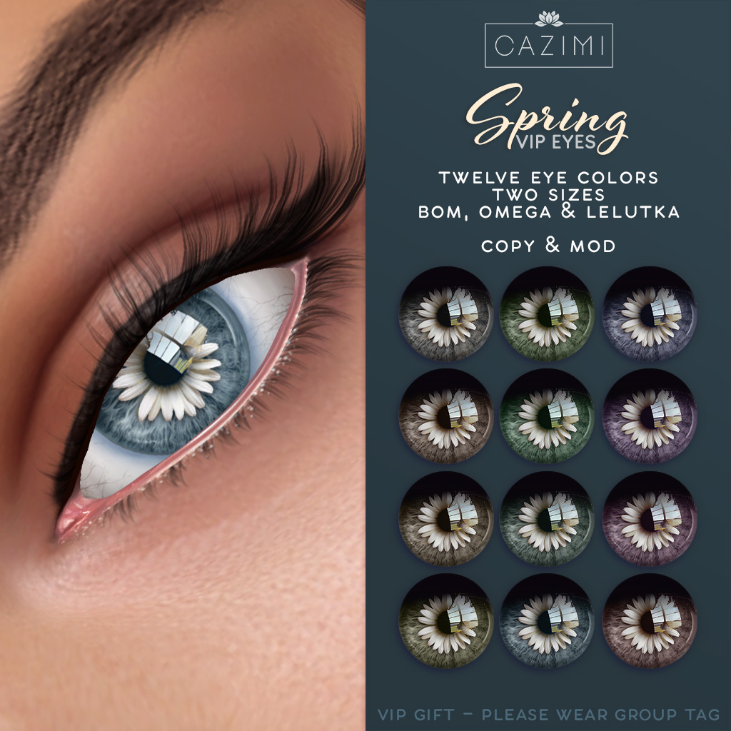 NEW Spring Eyes VIP gift. 12 eye colors in 2 sized. Omega, Lelutka and BOM.