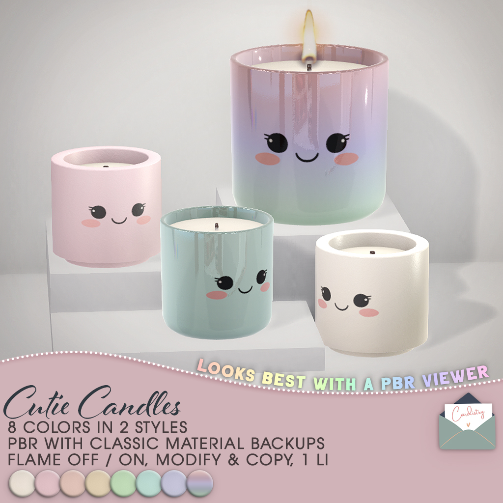 Cutie Candles Come in two styles and 8 colors. Just 1LI with click for on/off.