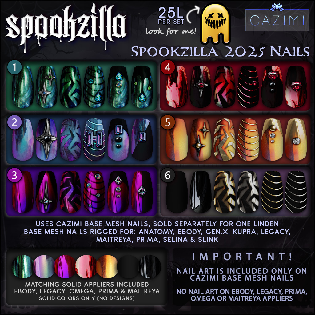 Before you head over to Spookzilla, for my VIP group members make sure you grab the new October gift nails! Gear up and take this hunt down! Available at the main store, make sure you have your CAZIMI VIP group tag on!