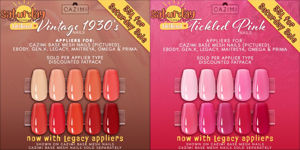 New at eBODY Reborn Event, Vintage Christmas Nails in Glossy and Glitter packs. Appliers for CAZIMI, eBODY, Legacy, Maitreya, Omega and Prima.