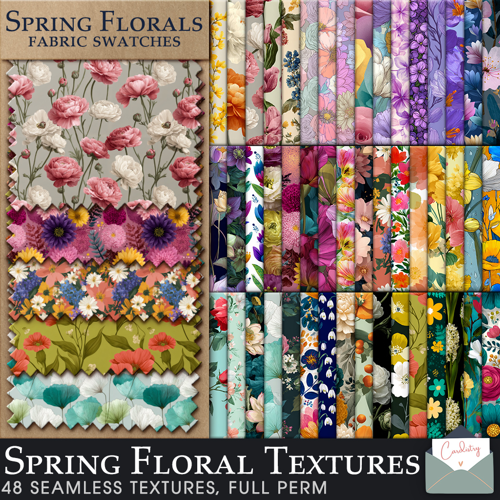 NEW at Designer Showcase for Cardistry, Spring Floral Texture Pack includes 48 full perm seamless floral patterns.