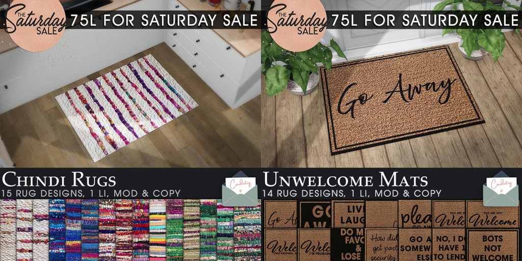 NEW! Chindi rugs are based on a colorful textile craft from India, using scrap fabrics to make items such as rugs. The Unwelcome Mats are perfect for the introvert who hates the sound of the doorbell! Let guests know you would rather they just didn’t! Both are just 75L this weekend for Saturday Sale, available at the main store.