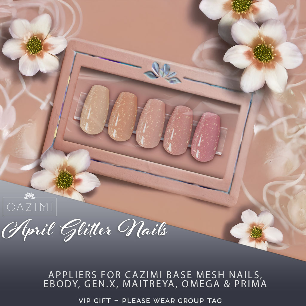 NEW at Prima Fair, the Spring Glitter Nails! Appliers for CAZIMI Base Mesh Nails (sold separately for 1L) Gen.X, Maitreya, Omega and Prima.