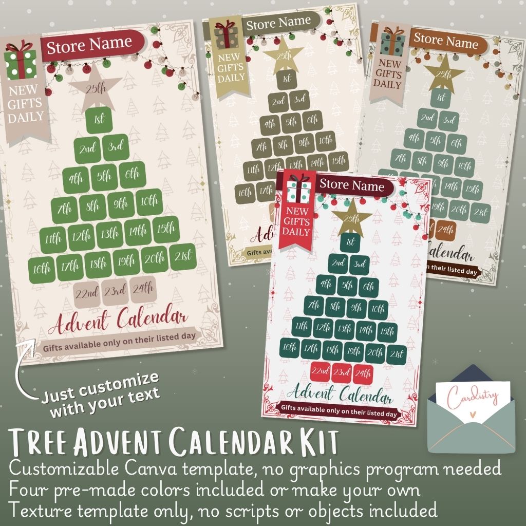 Speaking of customizable, I’ve created two commercial templates for the upcoming holidays. The Basic and Tree Advent Calendars are great for stores looking to do an advent calendar this year and want some ideas or a starting place to create the texture for their calendar. Change text, colors, fonts, etc. Does not include scripting or any objects, this template is for the texture only.