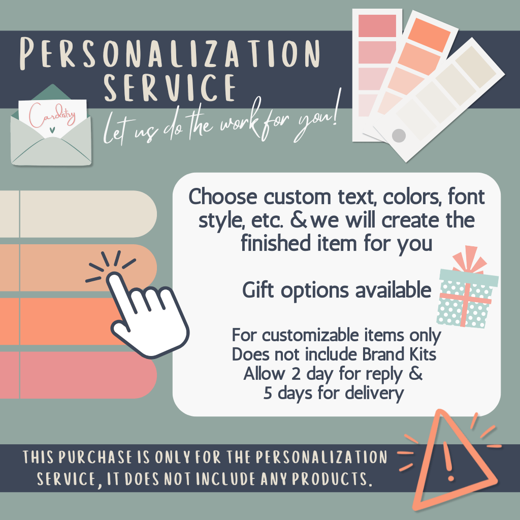 Customization Service: I’ve added the option to have certain items customized for you with an added service. If you like the customizable items, but don’t feel comfortable doing it yourself, or you want to gift the final item directly to someone, this service is for you! This service in only for personalization items (like the Family Welcome Mat above) so we made an icon to mark customizable items in the store. Not valid for Brand kits.