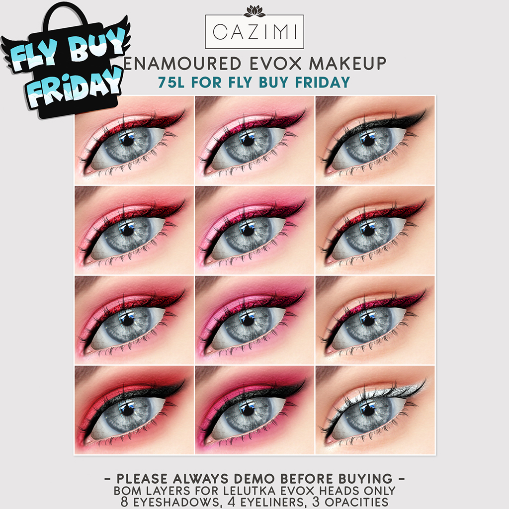 I’ve included demos for my Celestial EvoX ear tattoos so you can test them before the event. They work for Lelutka EvoX heads in EvoX mode, come in 12 styles, 3 opacities and you can tint them to any color you like.